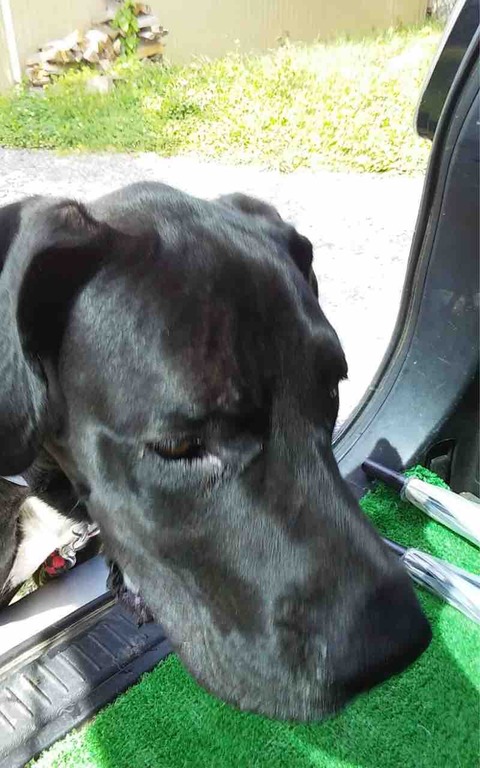 保護デーンのトーベン 、車に乗れるようになりました