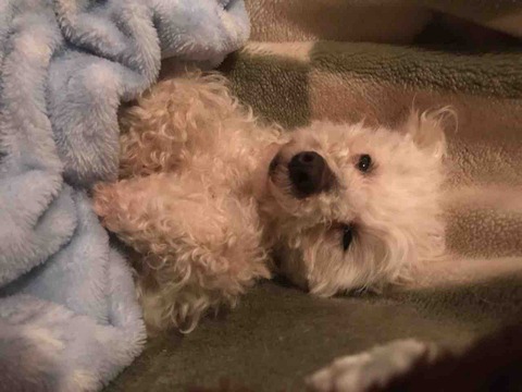 保護トイプードル「ソース」ちゃん 抱っこしてもらってやっと寝ることができます